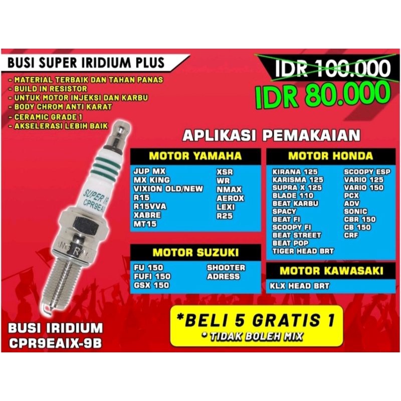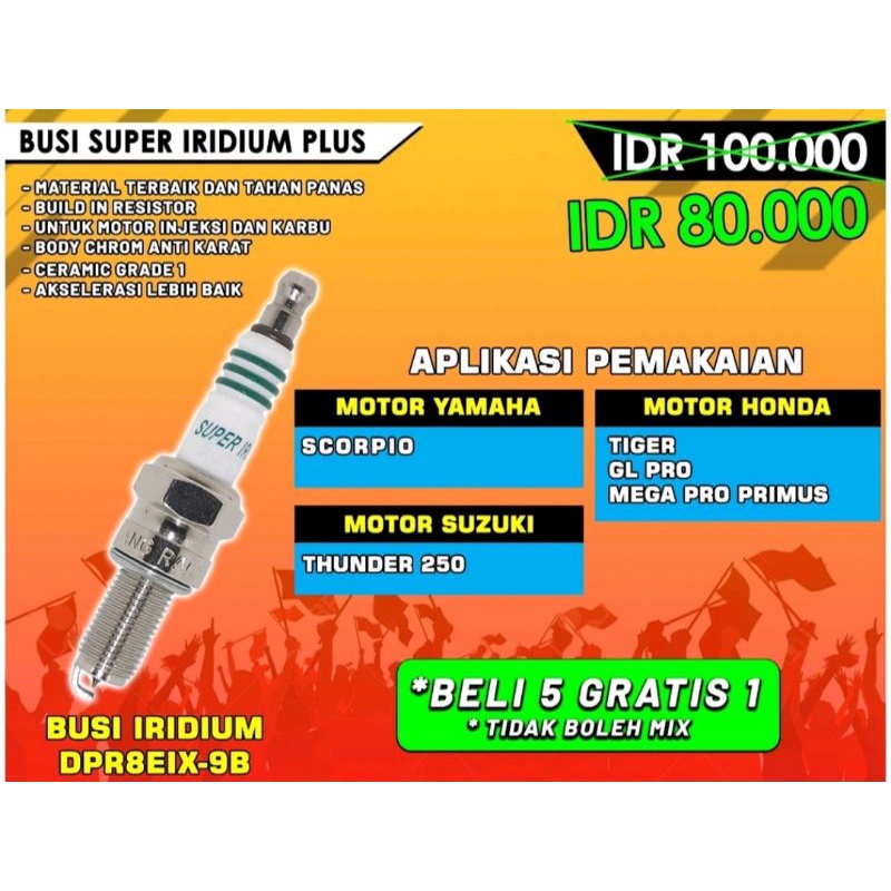 Busi Racing BRT SUPER IRIDIUM PLUS KLX CRF WR BEAT VARIO TIGER CB 150 SATRIA FU NMAX