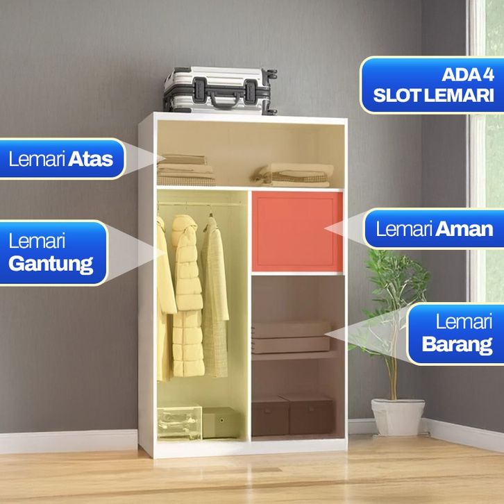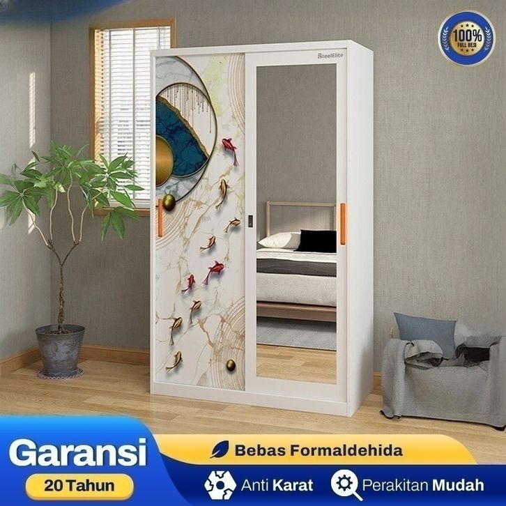 Lemari Besi Sliding 2 Pintu Steel Elite Lemari Baju Minimalis Full Motif