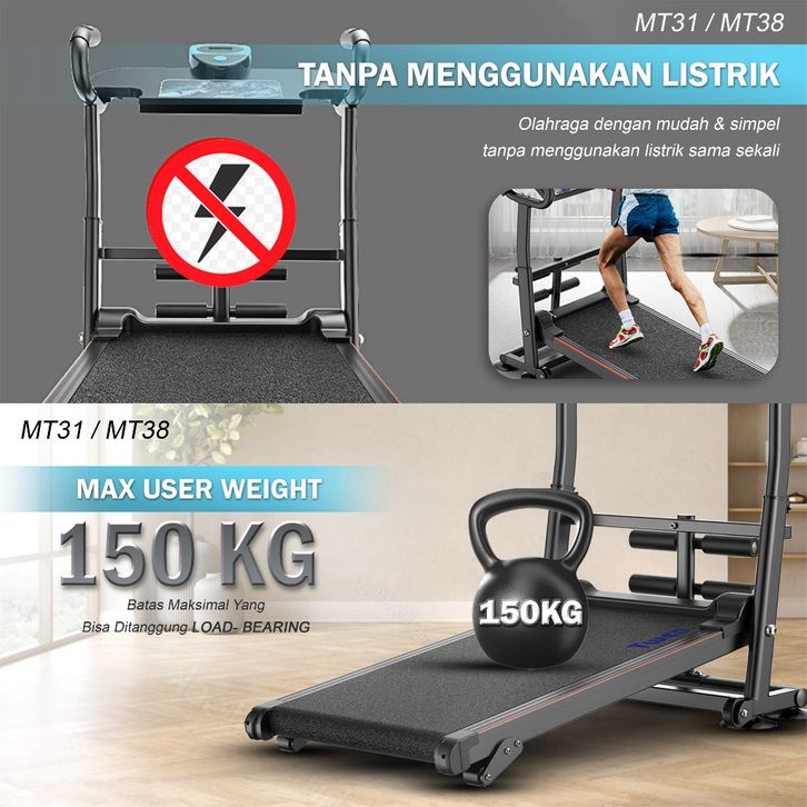 Treadmill TWEN MT21 MT28 MT31 MT38 Treadmill Tanpa Listrik Manual Treadmill Multifungsi Treadmill Lipat Alat Olahraga