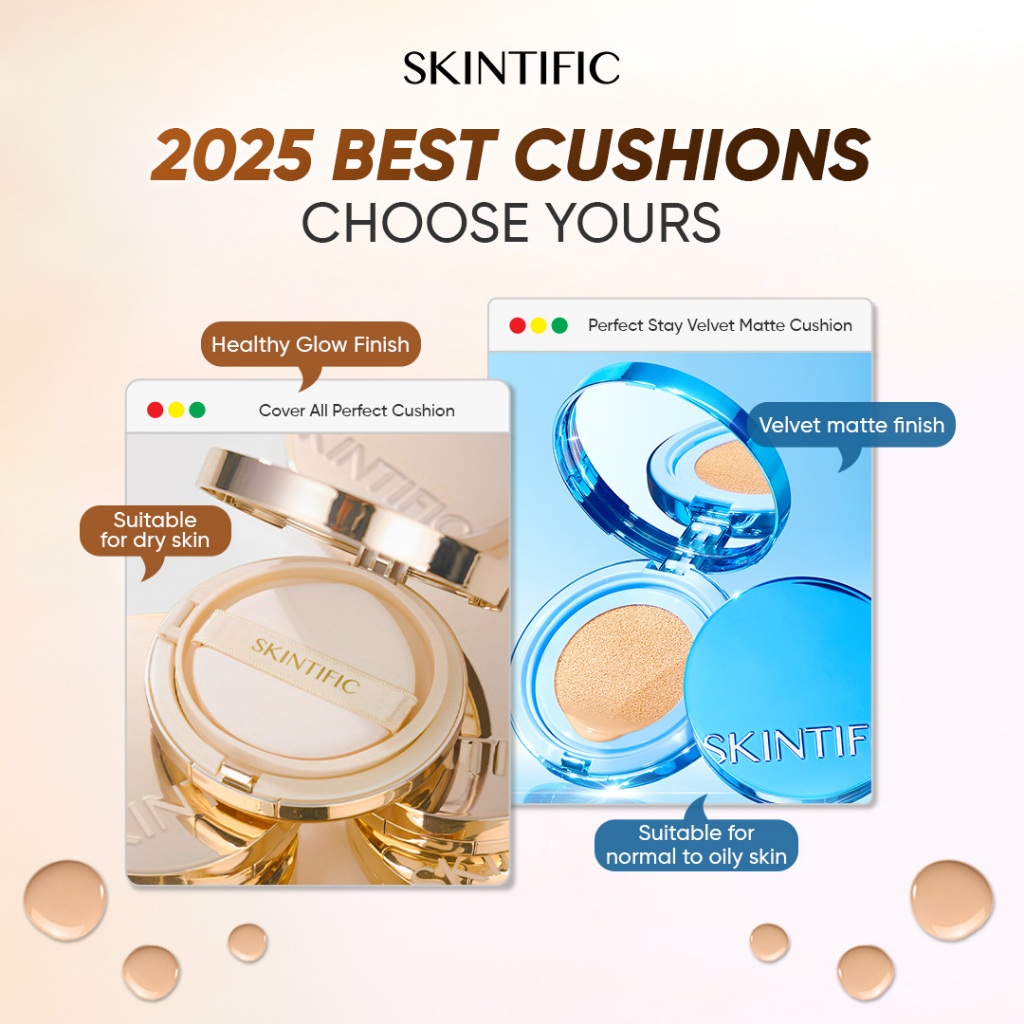 SKINTIFIC OFFICIAL STORE Cover All Perfect Cushion 11 ml Perfect Stay Velvet Matte Cushion High Coverage Oil-Contro ORI