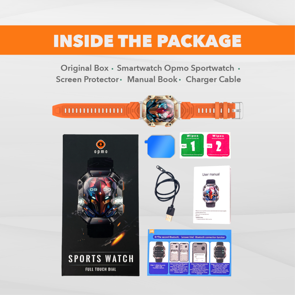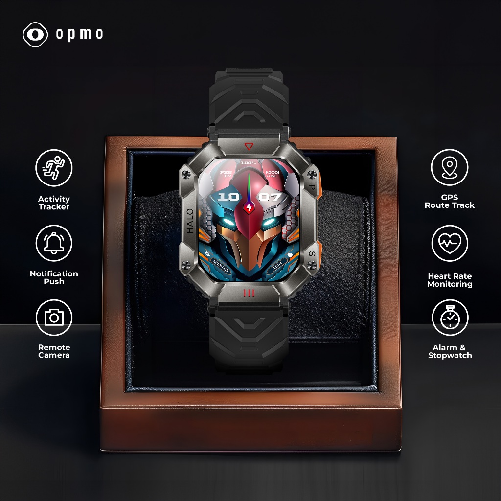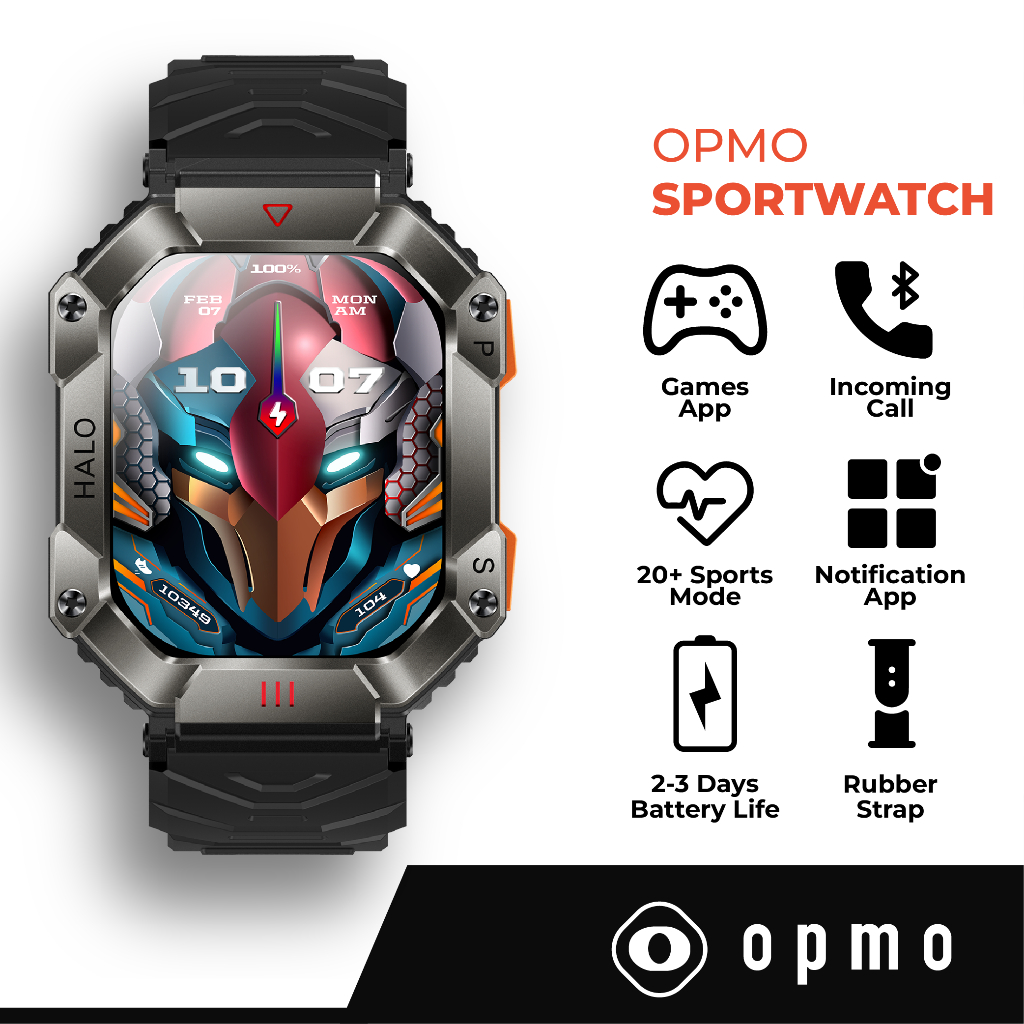 Opmo Sportwatch Smartwatch Pria IP67 Waterproof Bluetooth Call Sport Health Custom Wallpaper