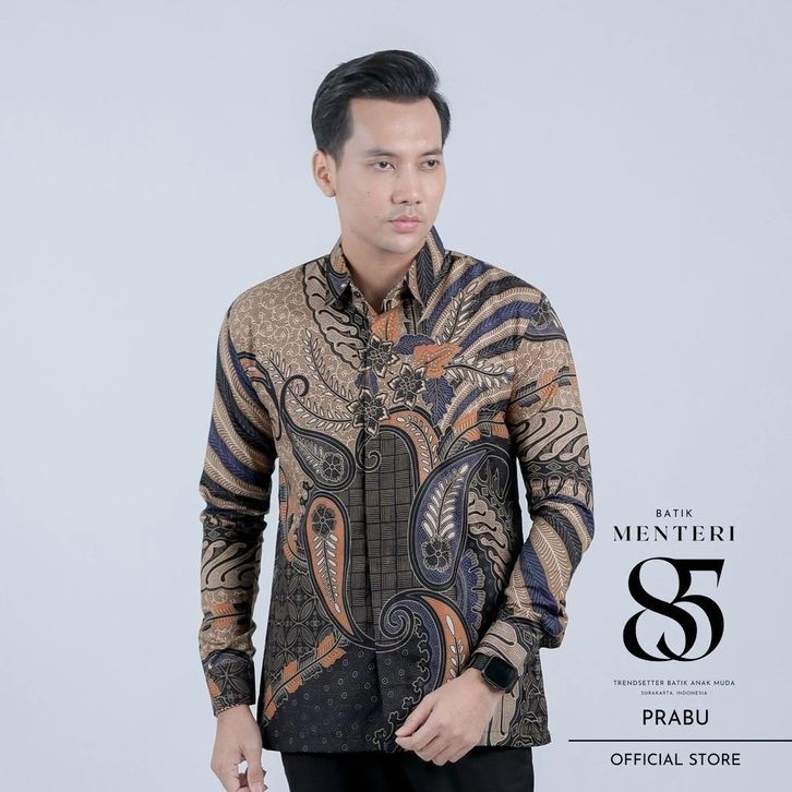 [Star] Kemeja Batik Menteri Premium Baju Batik Pria Motif Prabu Modern Lengan Panjang Slim Fit Original