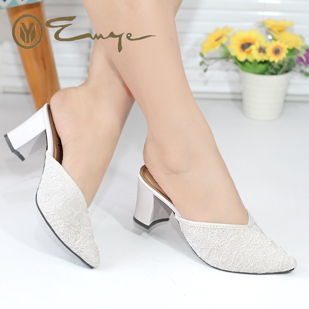Sepatu Selop Wanita Brukat Emye Sepatu Pengantin Wanita 36-41 Wedding Brukat 7cm Sandal Pesta Kondangan