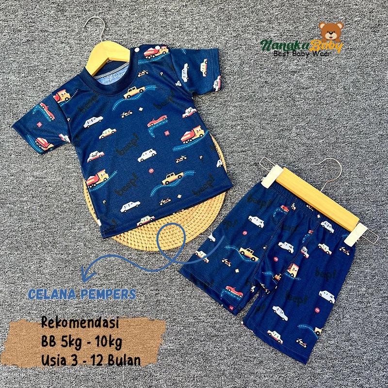 Nanaku Baby Setelan Baju Bayi Unisex Model Lengan Pendek Celana Pempers Pendek Usia 3-12 Bulan Motif Printing Beep