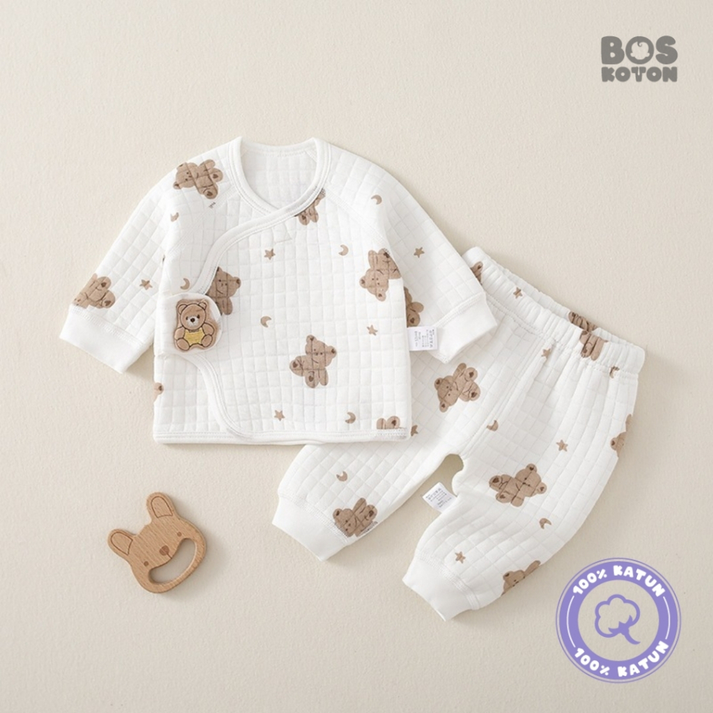 Setelan Kimono Bayi Newborn 0-6 Bulan – Katun Premium Adem Motif Bear Unisex
