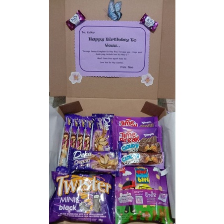 SNACK BOX Kado Ulang Tahun/ Kado Wisuda/ Kado Anniversary / Paket Ungu