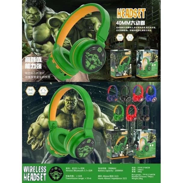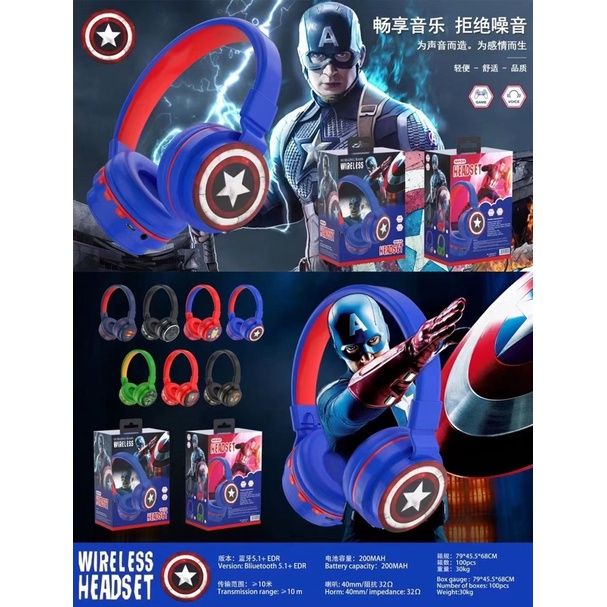 Headphone Bando Bluetooth Wireless Type Nm-02 Karakter Marvel Avengers