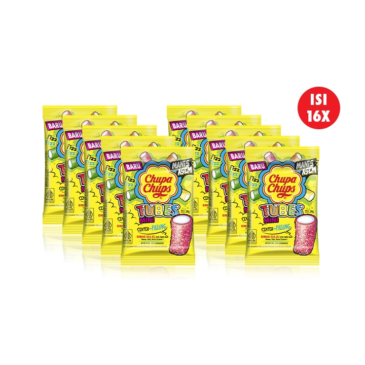 Chupa Chups Sour Tubes 24g - Permen Jeli Asam Manis Rasa Buah Tropikal (1 Box)