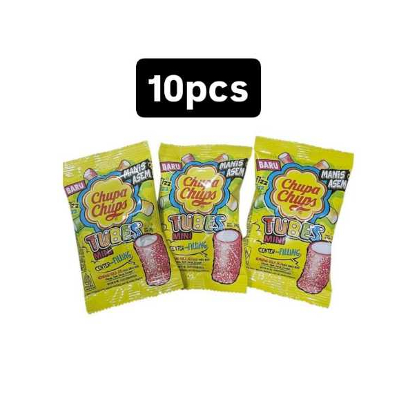 Chupa Chups Tubes Mini Center Filling Manis Asem.. Permen - 10pcs