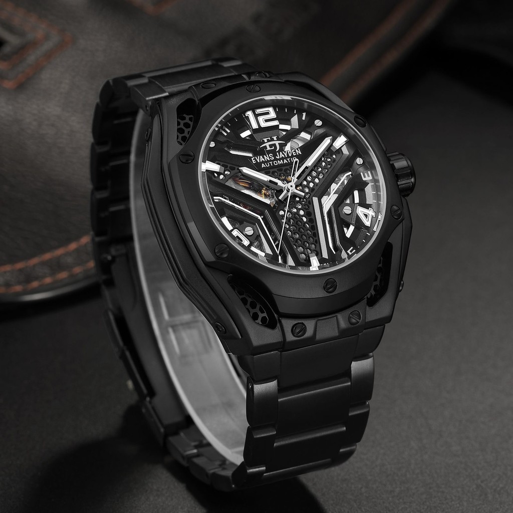 Evans Jayden Jam Tangan Pria 9621 Rantai Automatic Movement Stainless Steel Kaca Sapphire Chronograph Water Resistant 5