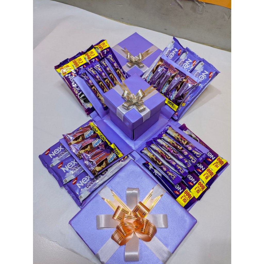 Eksplosion box snack Ungu box kado unik box hampers box snack 3 lapis satu kotak kecil
