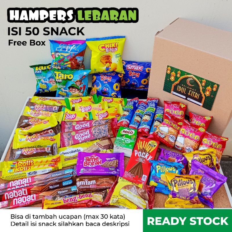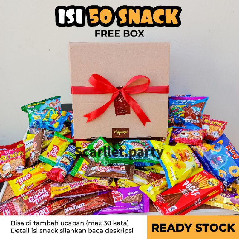 [FREE BOX] PAKET KADO HAMPERS SNACK ISI 50 PCS SNACK NATAL LEBARAN KADO ULANG TAHUN BIRTHDAY ULTAH WISUDA ANNIVERSARY SI