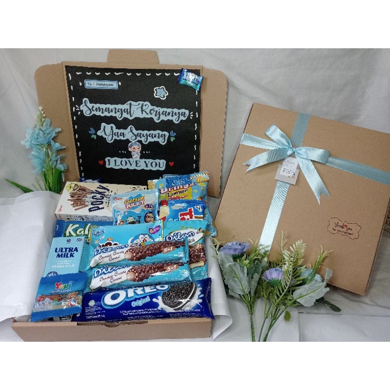 HAMPERS SNACK BOX BIRU/ KADO WISUDA/ KADO ANNIVERSARRY / KADO ULANG TAHUN/ PAKET BIRU