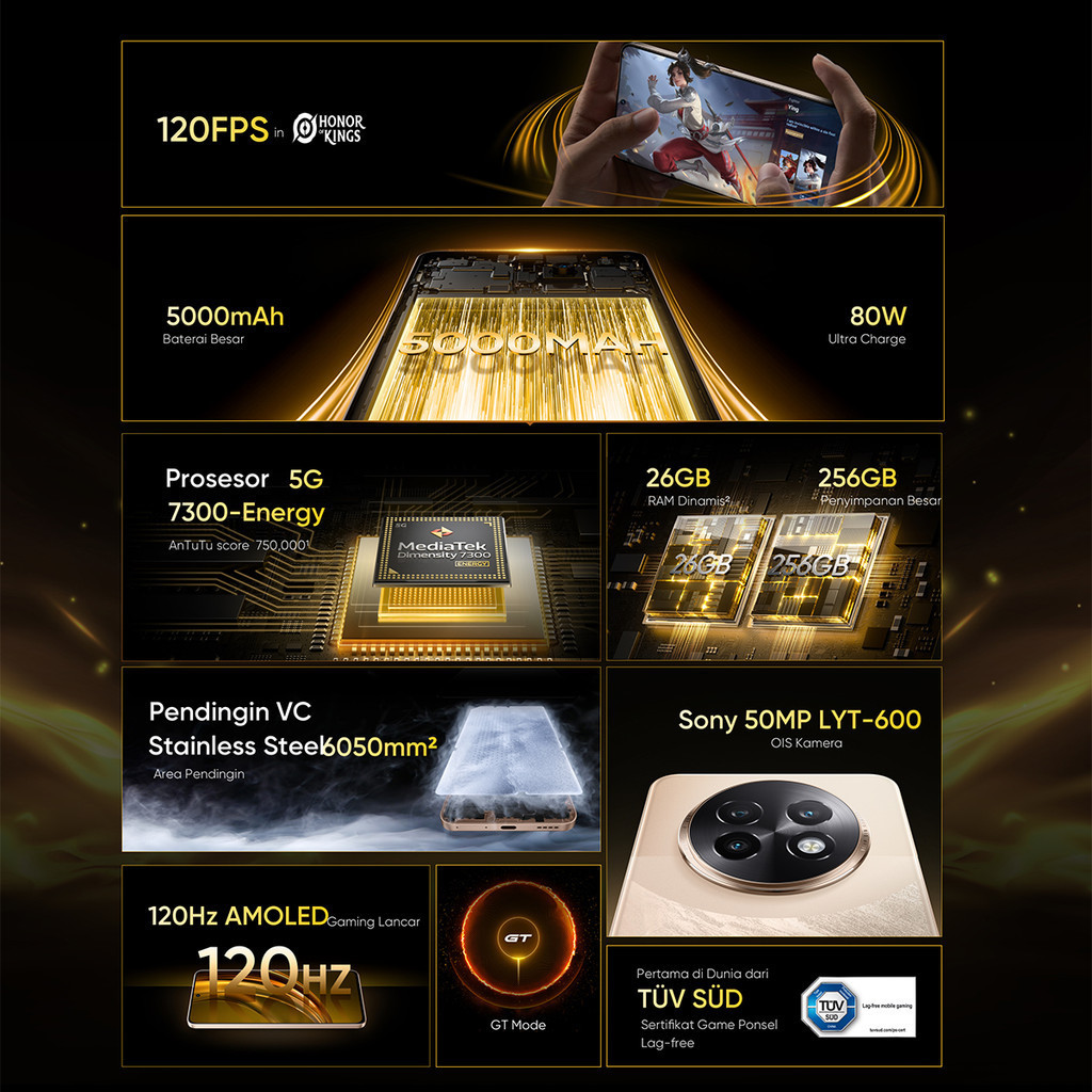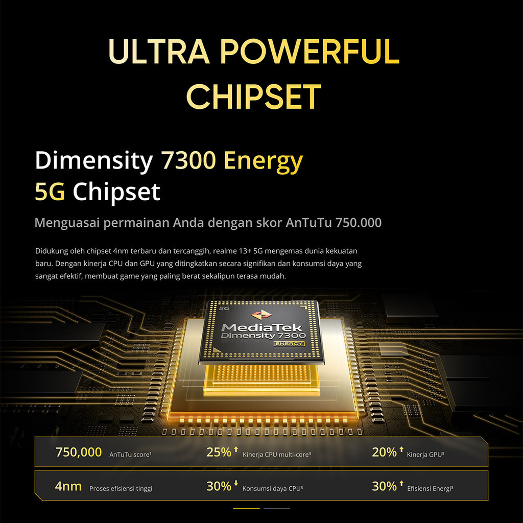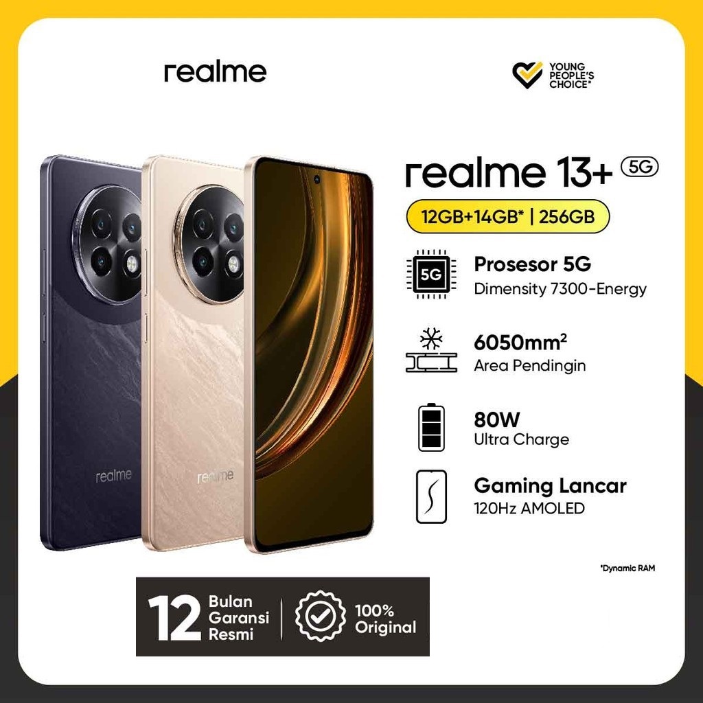 realme 13+ 5G 12GB+256GB (Prosesor 5G Dimensity 7300-Energy | 6200mm2 Area Pendingin | 80W Ultra Charge | 120Hz