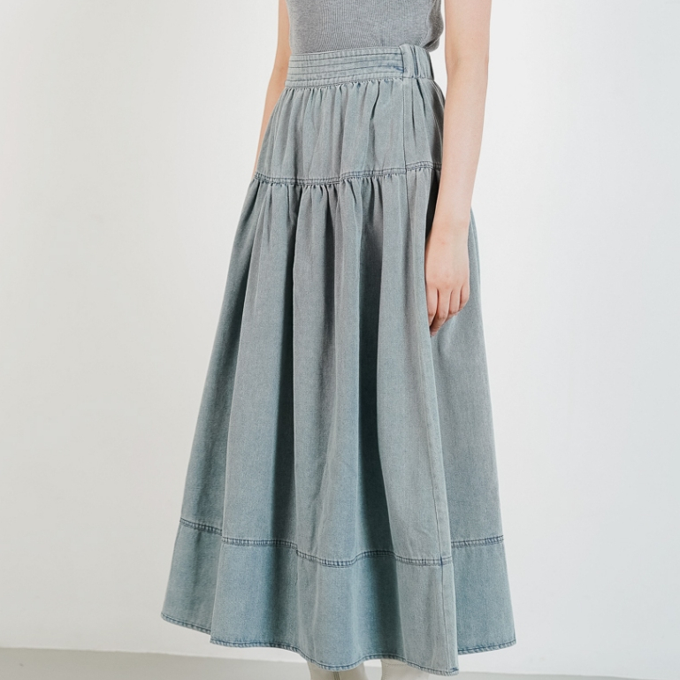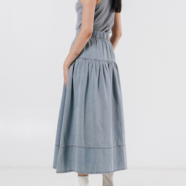 THIS IS APRIL ROK MAXI PANJANG WANITA JEANS RUFFLE EVE SKIRT DENIM B2003500