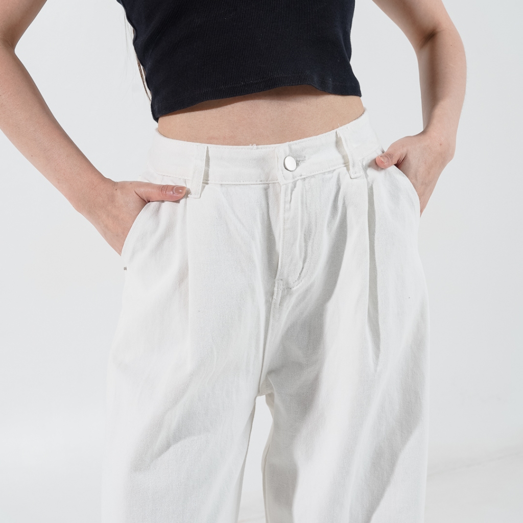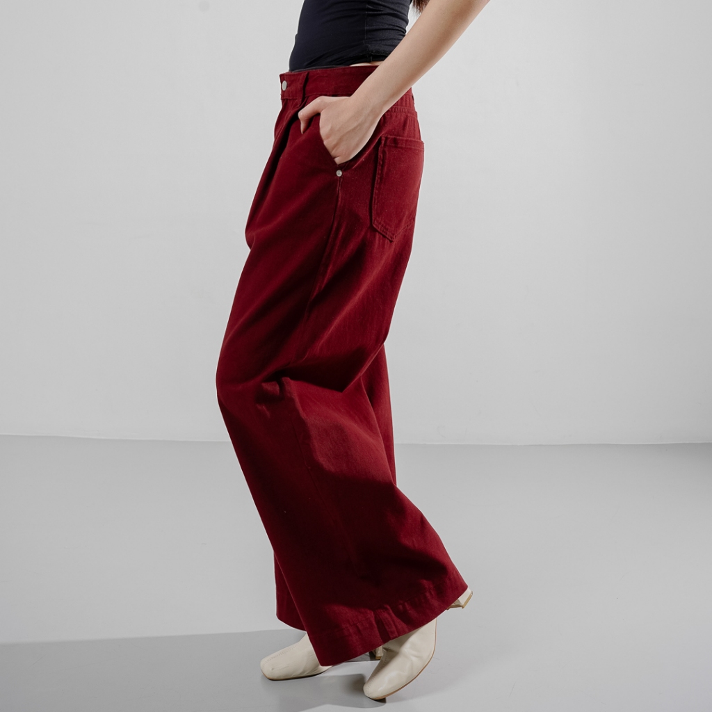 THIS IS APRIL CELANA PANJANG WANITA DENIM HIJAB FRIENDLY GIONA PANTS WHITE DAN MAROON