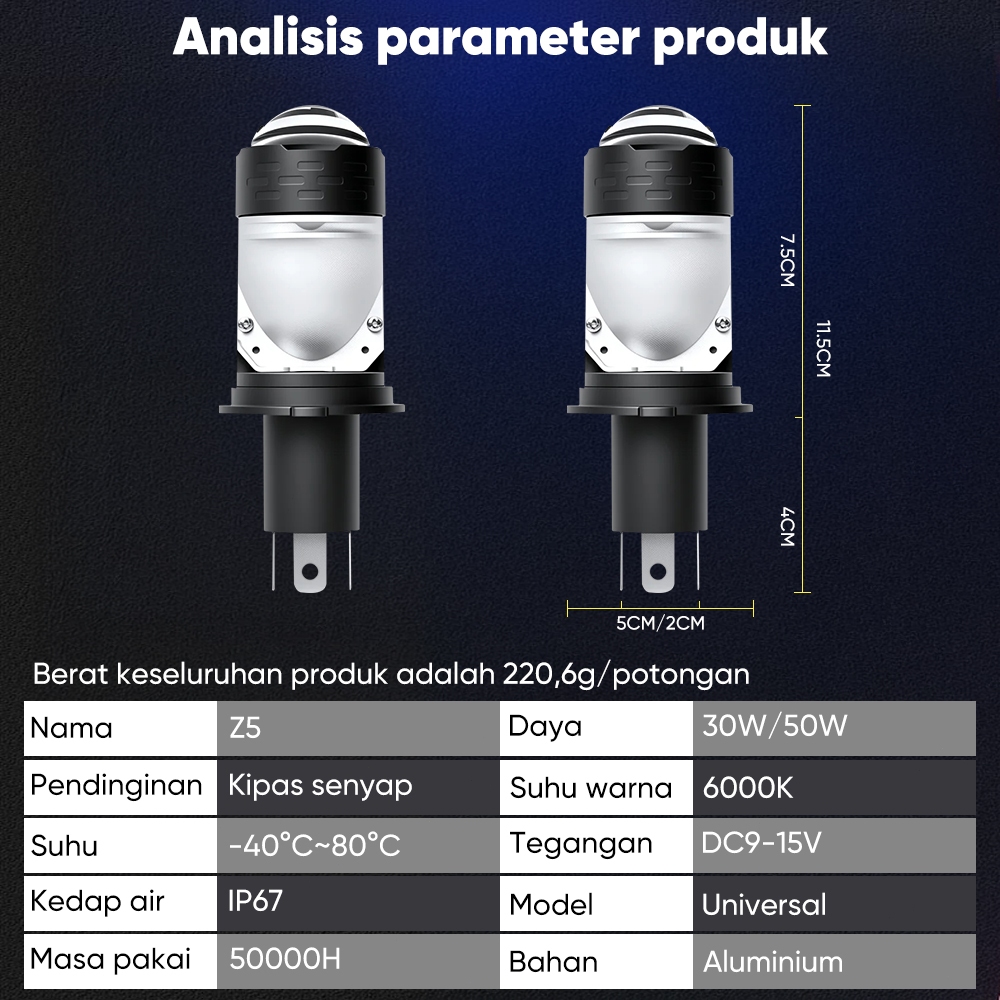 Lampu Utama LED H4 Original Z5 High Low AC DC Plus Kipas Pendingin Full Aluminium