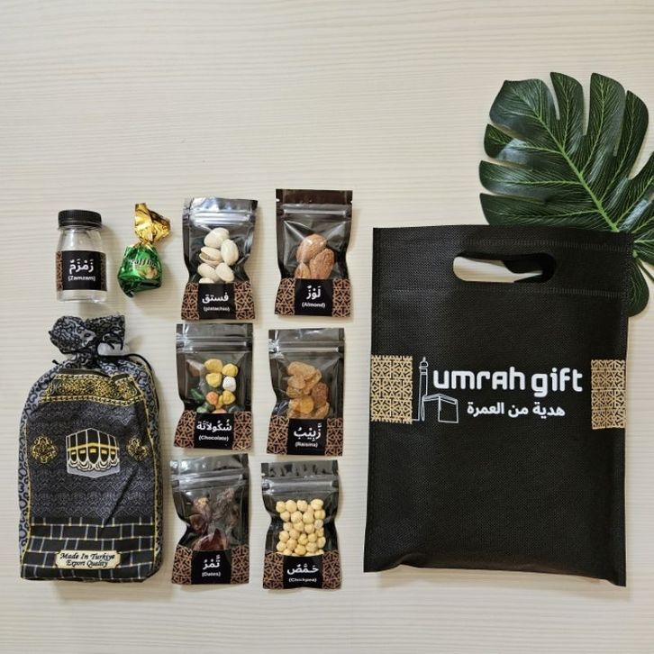 (TERMURAH)Souvenir snack oleh oleh umroh haji kemasan tas tenteng hitam
