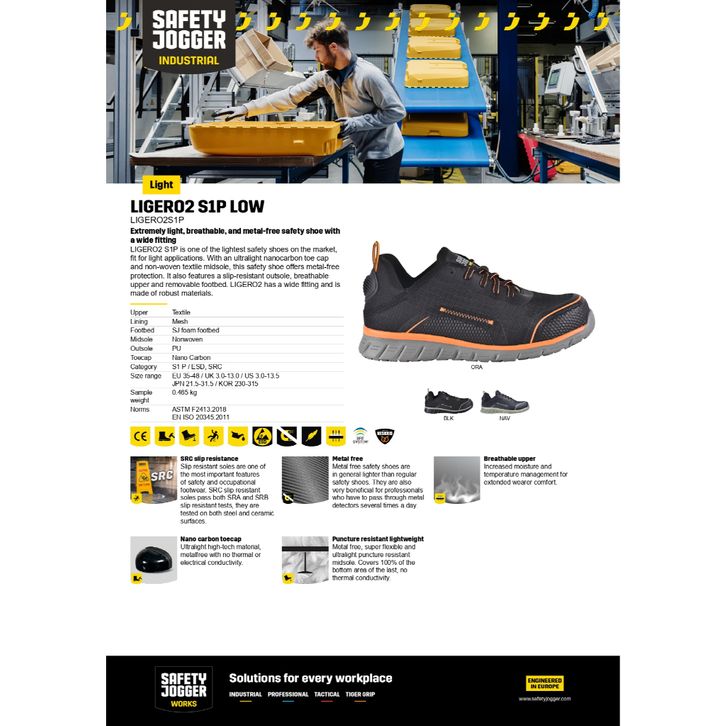 Sepatu Safety Jogger Ligero2 Ligero 2 Low BLACK HITAM S1P Original Termurah