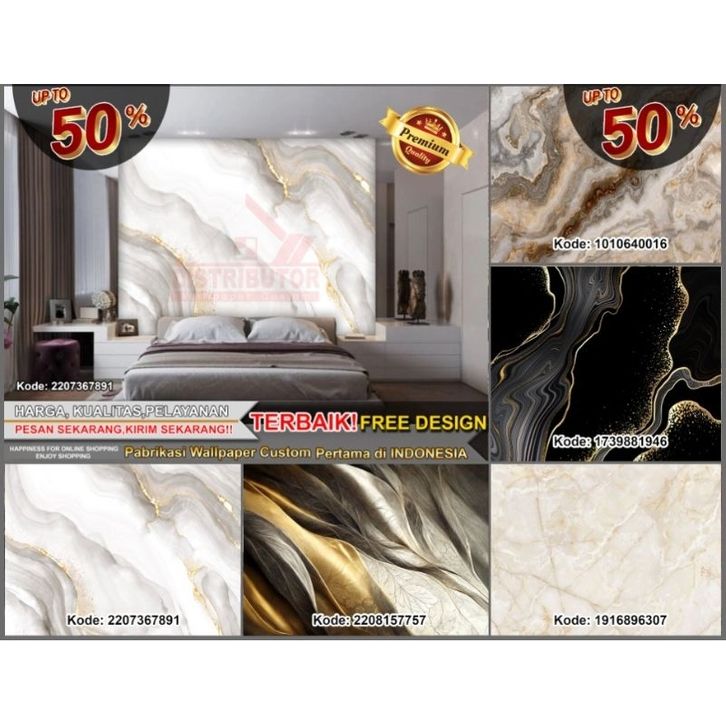 (TERLARIS)Wallpaper Custom 3D Marmer | Wallpaper Dinding | Wallpaper Marble | Request Gambar | Kamar Tidur | W
