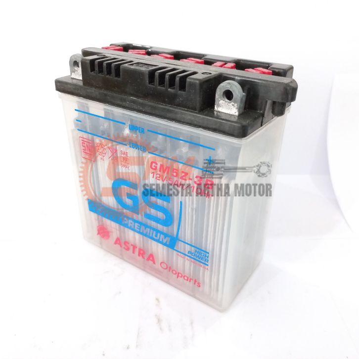 Accu Basah GS Astra GM5Z-3B Premium Kit 12V 5Ah Aki Motor Grand Astrea Mio