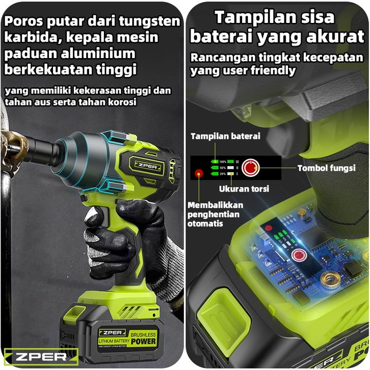 ZPER Cordless Impact Wrench Brushless impact baterai wrench Mobil Mesin Bor Untuk Baut ZP013