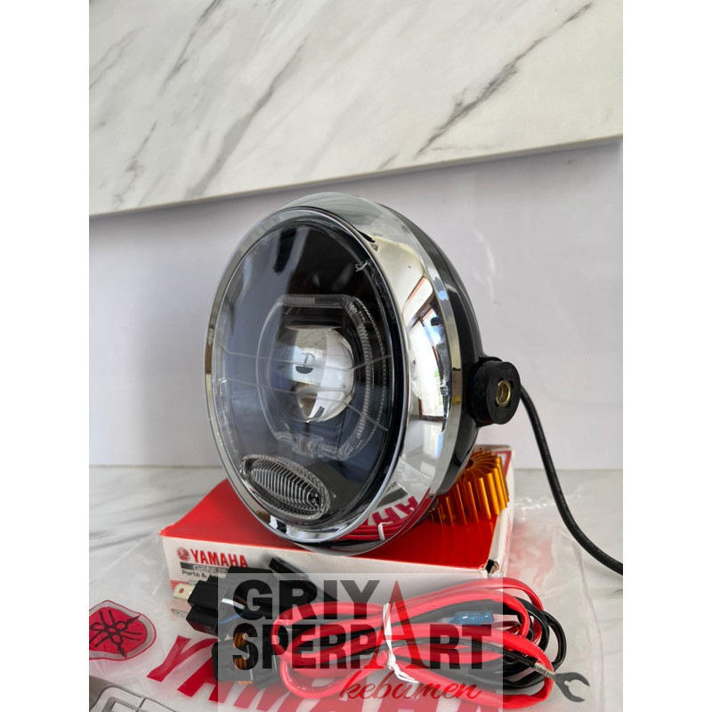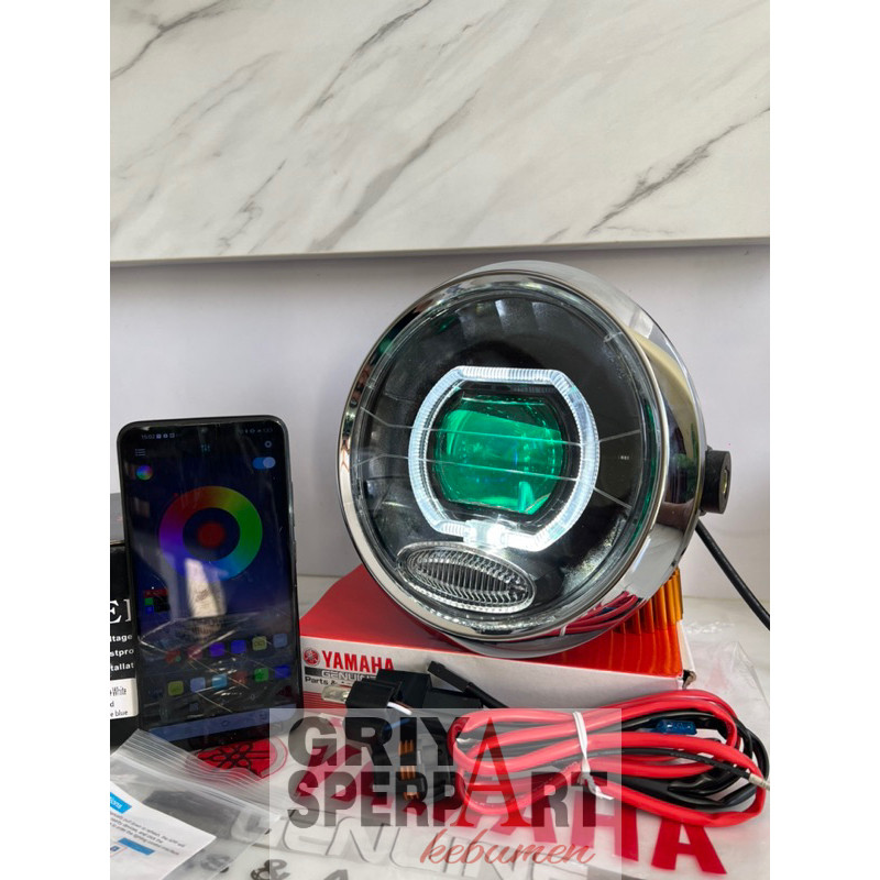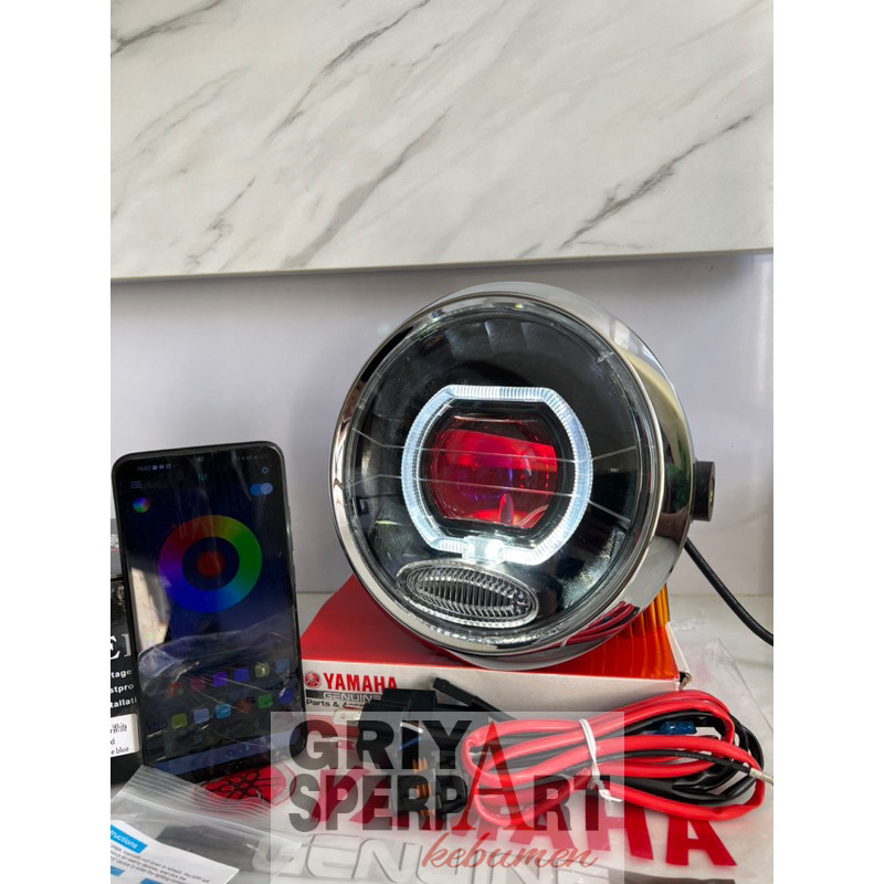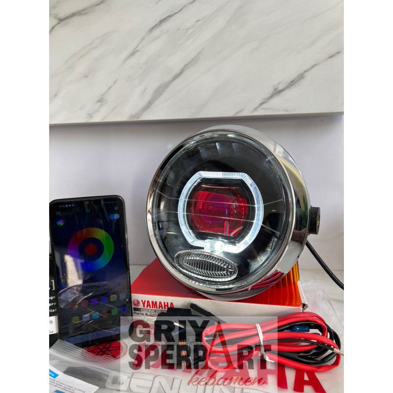 Lampu depan Rx king New peredam bulat custome biled billed ASLI projector CR7 devil RGB batok ring originaL + Relay