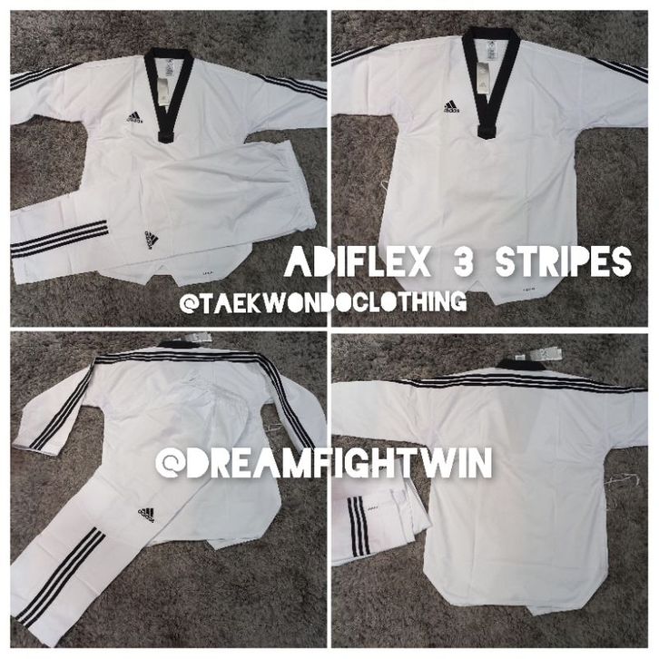 Dobok Taekwondo Adidas Adiflex 3 Stripes Putih Polyester