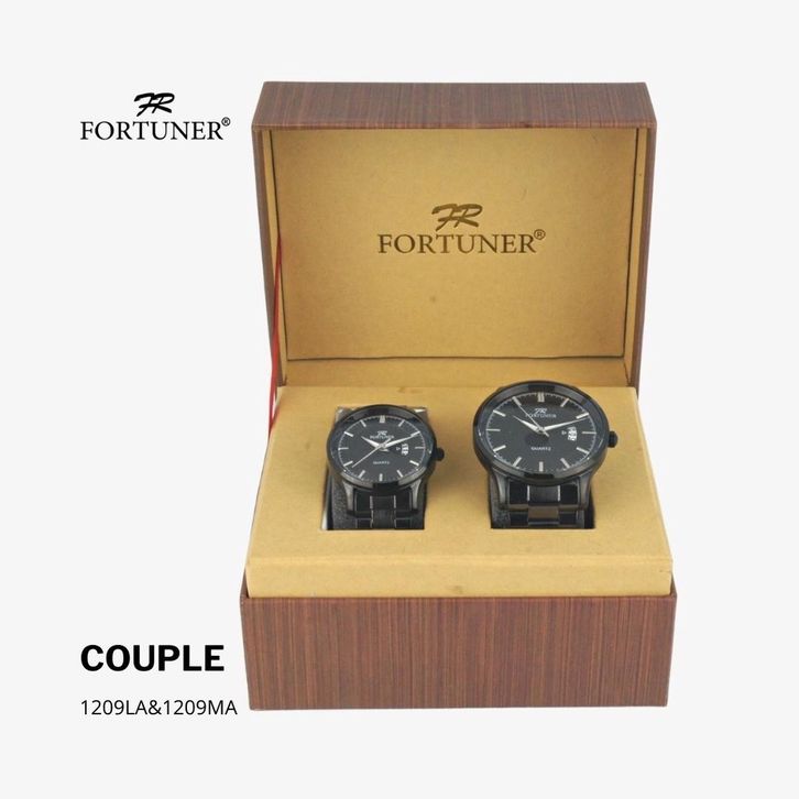 Fortuner Arloji Couple Jam Tangan Analog Tahan Air Water Resistant Rantai Stainless Celestial Hitam