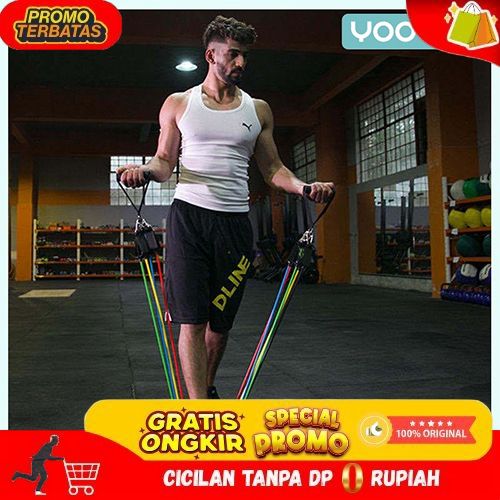 [Mall] YooWoo Resistand band set 11pcs /11in1 Set tali fitness/Set tali gym/Band stretching