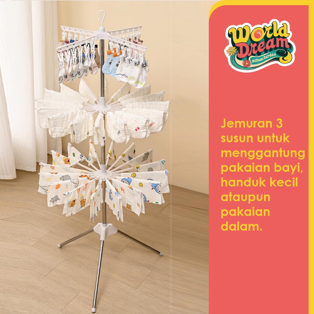 Worldream Jemuran Menara 3 Susun Jemuran Lipat Jemuran Baju Jemuran Pakaian 3 Tingkat