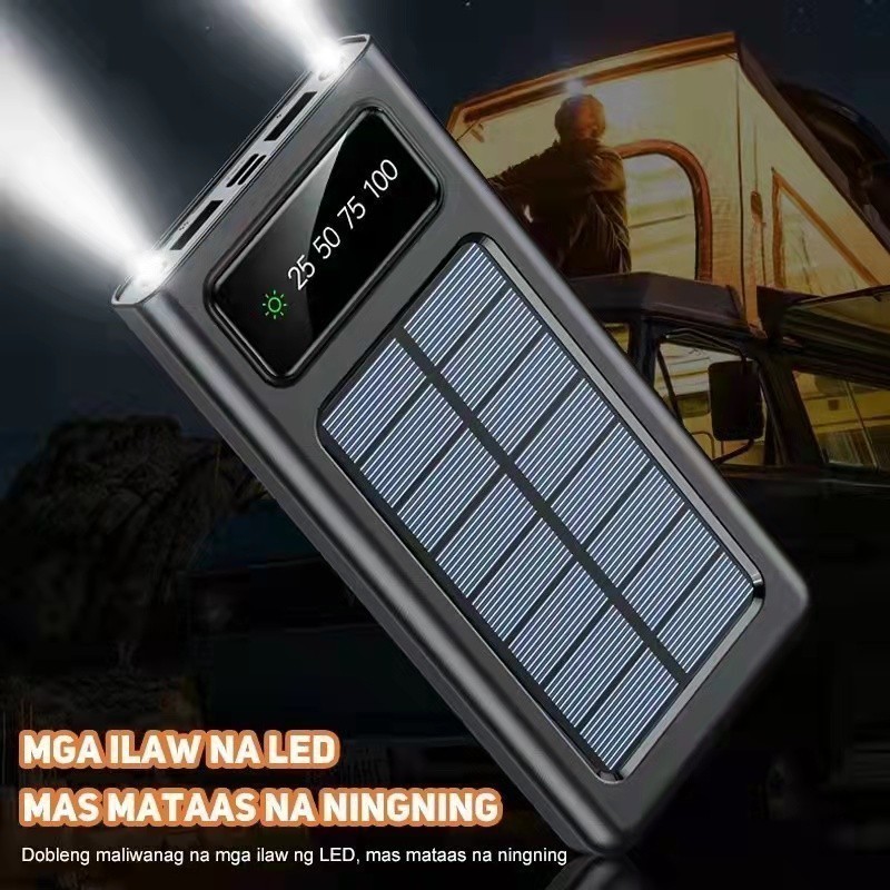 Powerbank Solar 100000mah Tenaga Surya Kabel Built In Tahan Lama Awet
