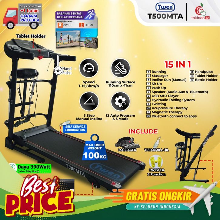 [Mall] Twen Treadmill T500MT T500MTA / Treadmil Electric Low Watt / Treadmill Elektrik / Alat Olahraga