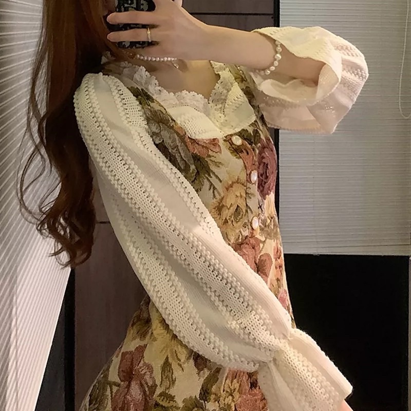 Dress Aesthetic Vintag Korean Style Dres Premiun French Tebal Premiun Best Seller Kekinian