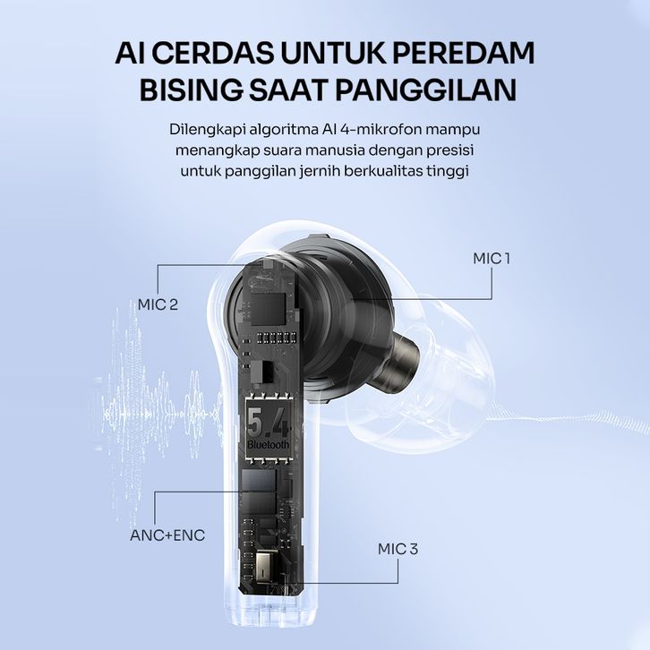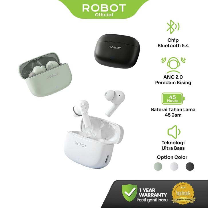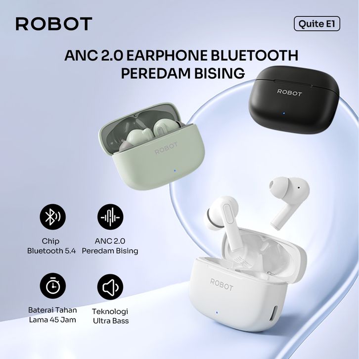 ROBOT New Earphone Bluetooth ANC 2.0 with Bluetooth 5.4 True Wireless Stereo Ultra Bass Algoritma AI 4-Mikrofon Quite E1