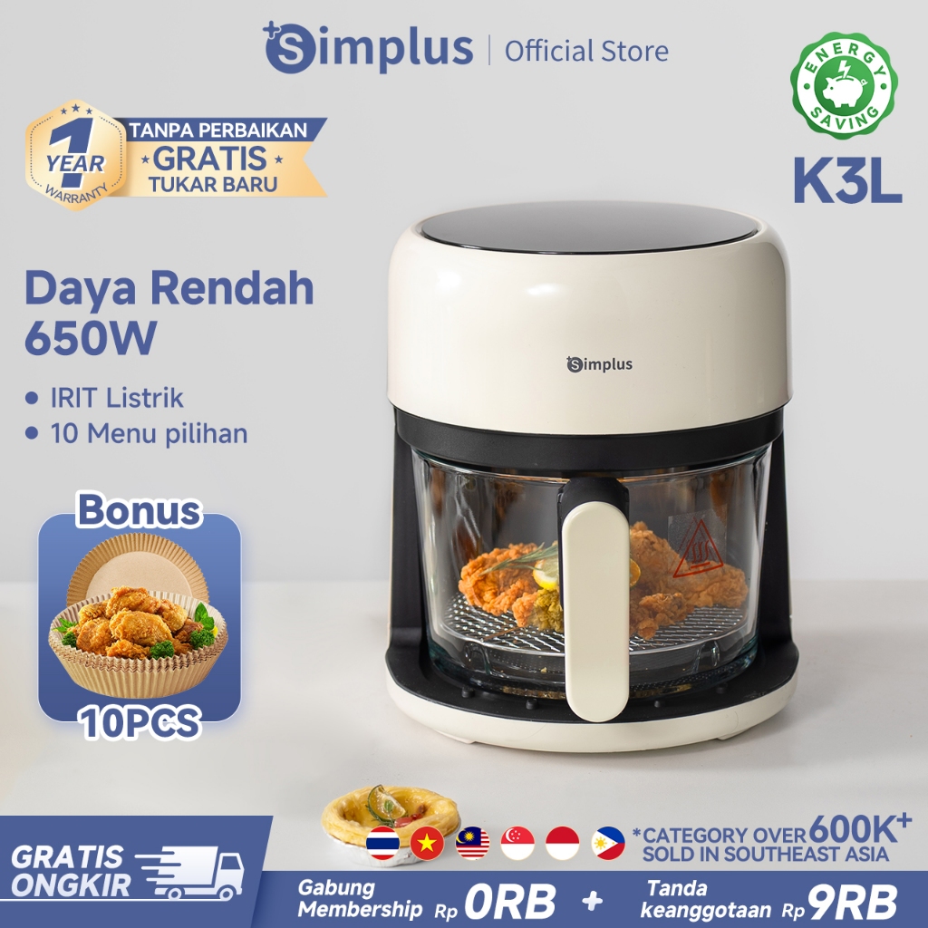 Air Fryer Penggorengan Udara Kapasitas 3.5L 360° Panoramic Window Layar Sentuh Multifungsi