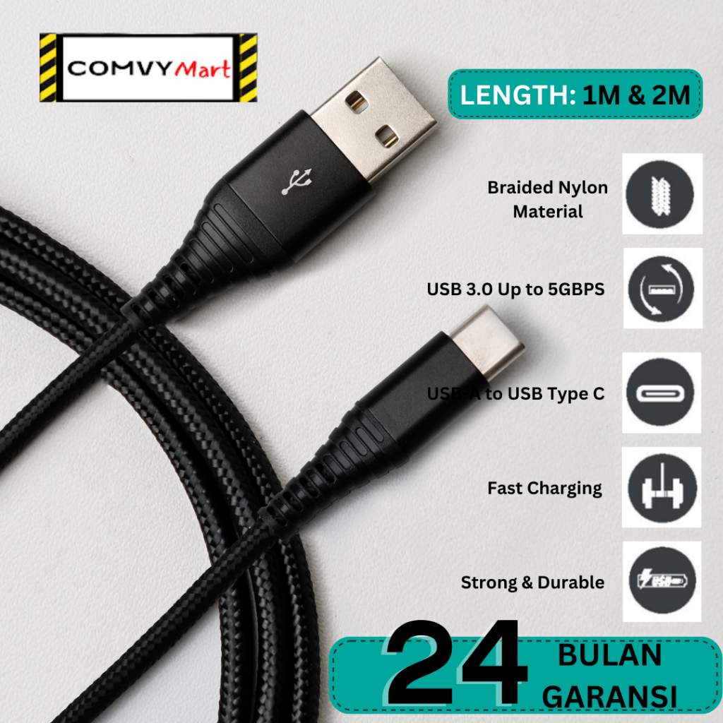 [Star] Kabel Data 60W 3A Nylon Braided USB Type A to Type C PD Quick Charge QC3.0 Fast Charging Charger Samsung