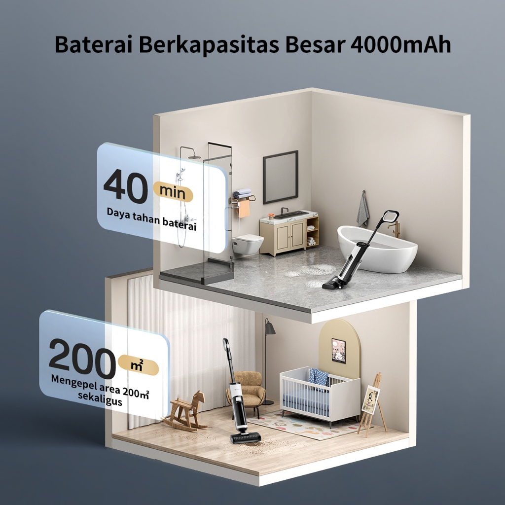 Wet Dry Vacuum Cleaner Sterilisasi 4 Lapis Daya Hisap 20kPa Tangki Ganda Super Besar