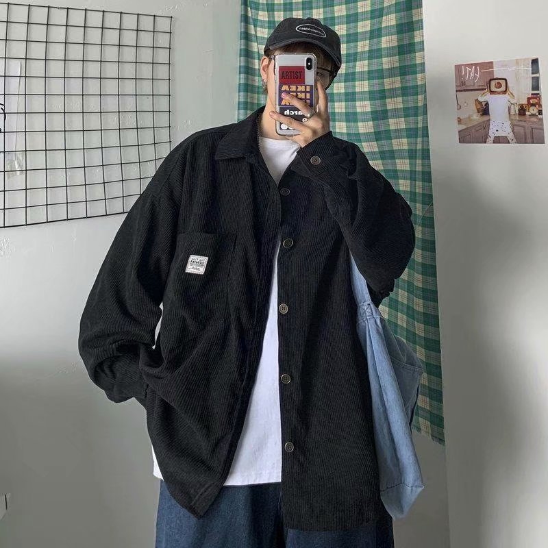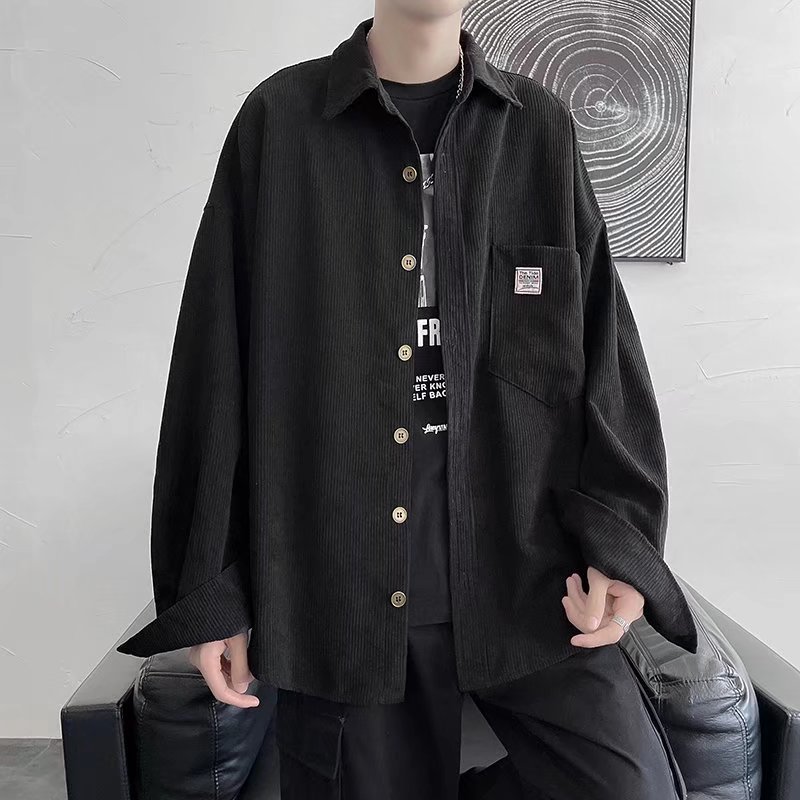 DARK ICON CORDUROY KEMEJA PRIA LENGAN PANJANG PLAIN OVERSIZE SHIRTS MEN KOREAN OUTERWEAR 90S OUTFIT BAJU PRIA HIJAU / ABU-AB/HITAM