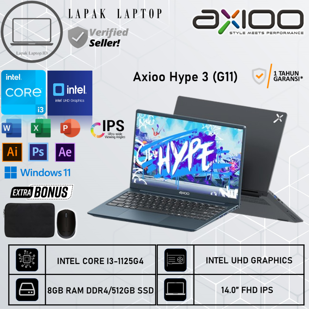 LAPTOP MURAH AXIOO HYPE 3 (G11) INTEL I3 1125G4 RAM 8GB 512GB 14.0 FHD WINDOWS 11 PRO