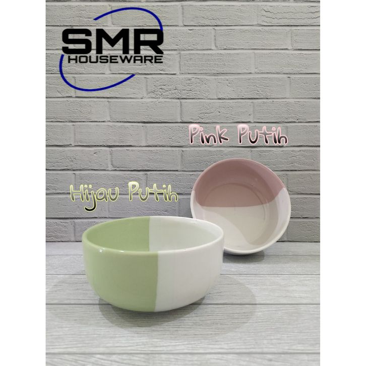 MANGKOK MAKAN MANGKOK MAKAN KERAMIK MANGKOK BULAT 2 WARNA MANGKOK TWO TONE UKURAN 5,5 INCH ( HARGA PER 6 PCS )