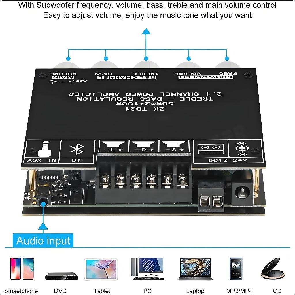 ZK-TB21 ZK-502MT ZK-MT21 5.0 AMPLIFIER SUBWOOFER 2.1 BOARD 50W2+100W 2.1 SALURAN DAYA AUDIO STEREO BASS AMP TPA3116D2