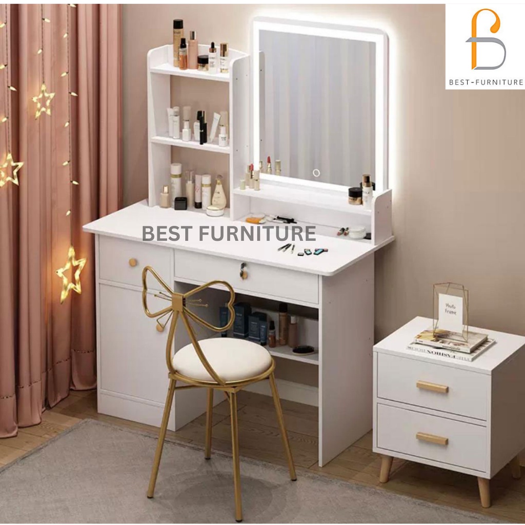 Best Meja Rias Sliding LED Meja rias Kaca Putih Minimalis meja rias,meja rias led,meja rias minimalis, meja rias lampu,m