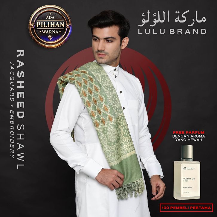 Sorban Kashmiri Jacquard Motif Sulam Bordir Timbul Premium Original Pria LULU BRAND Rasheed Shawl