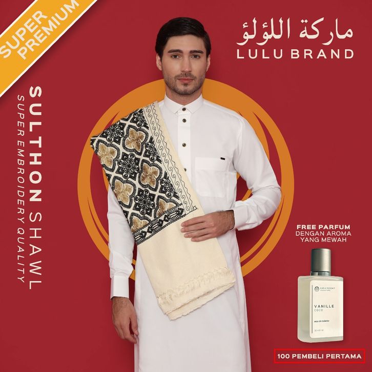 Sorban Kashmiri Pria Motif Sulam Full Bordir Rida Super Premium Surban Arab LULU BRAND 638EB Sulthon