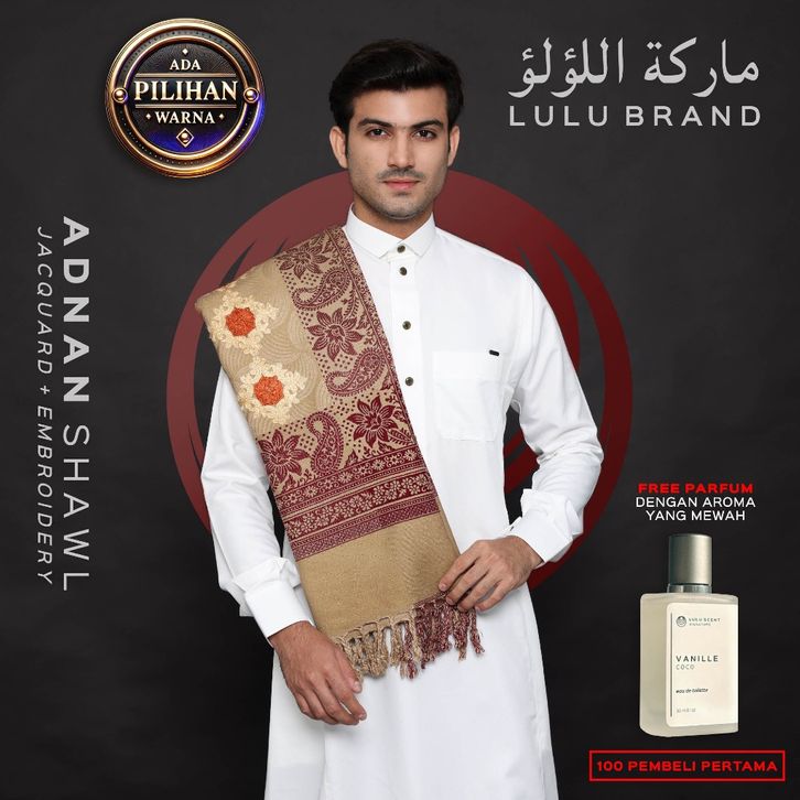 Sorban Kashmiri Premium Rida Jacquard Motif Sulam Bordir Original Arab Pria LULU BRAND Adnan Shawl