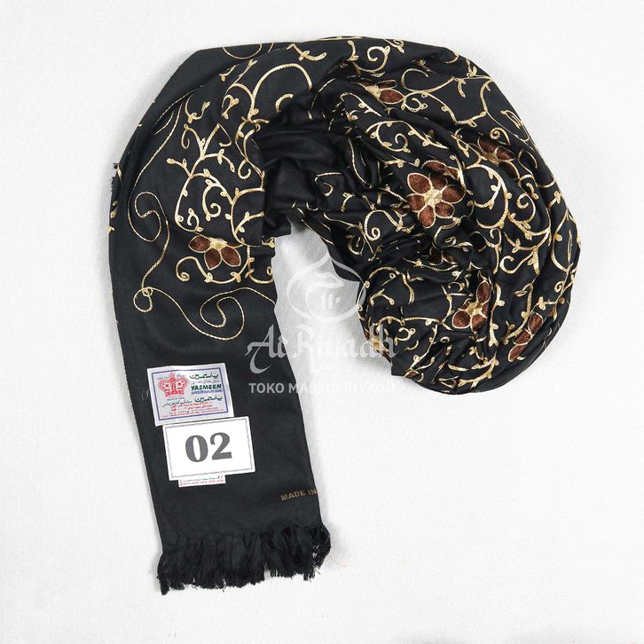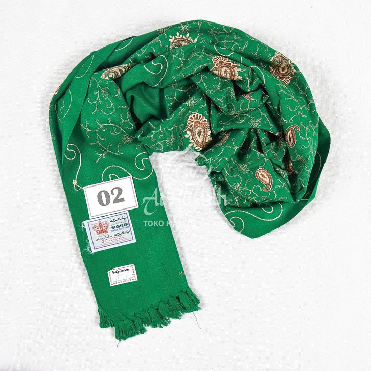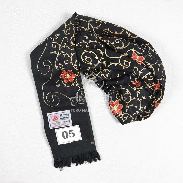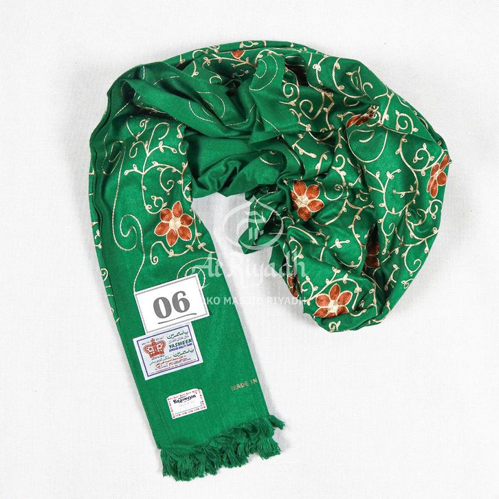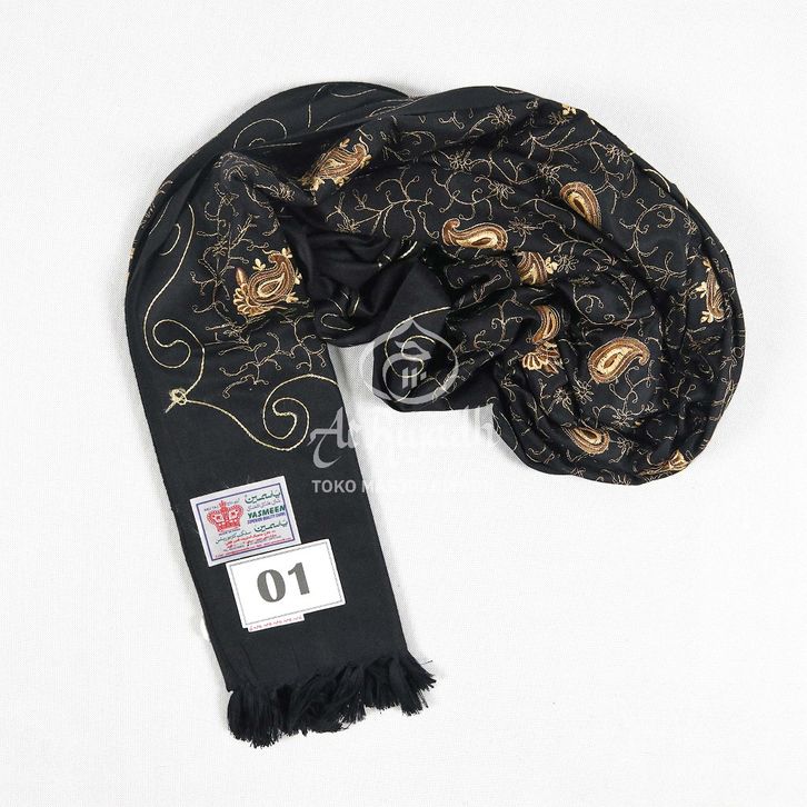 Sorban YASMEEN Kashmiri 1063F Hitam Hijau Full Motif Sulam Mewah
