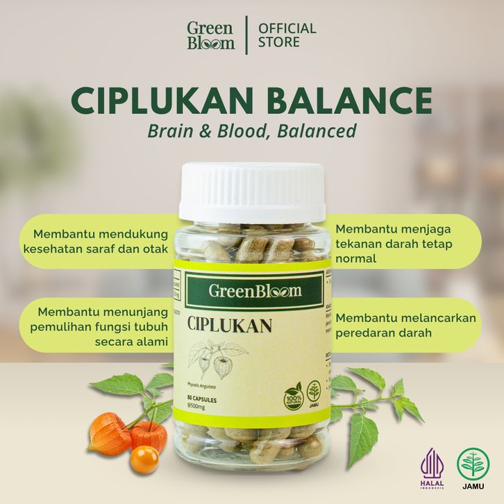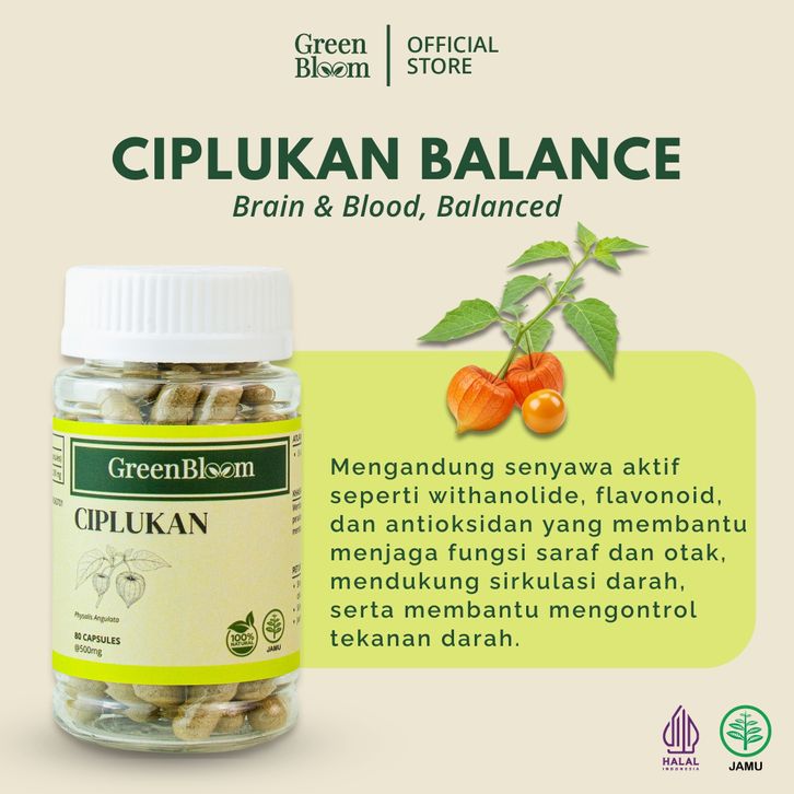 GreenBloom Ciplukan - Stroke Ringan Lumpuh Terapi Syaraf Otak Hipertensi Parkinson Tremor 80 Kapsul