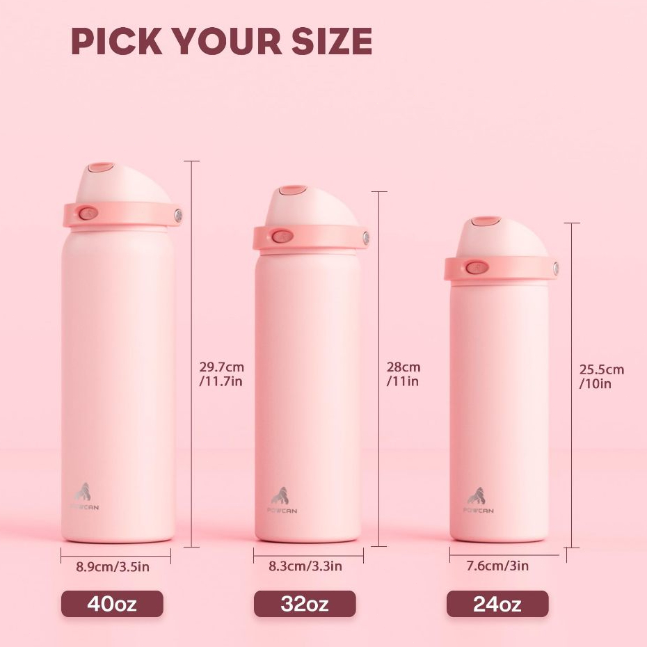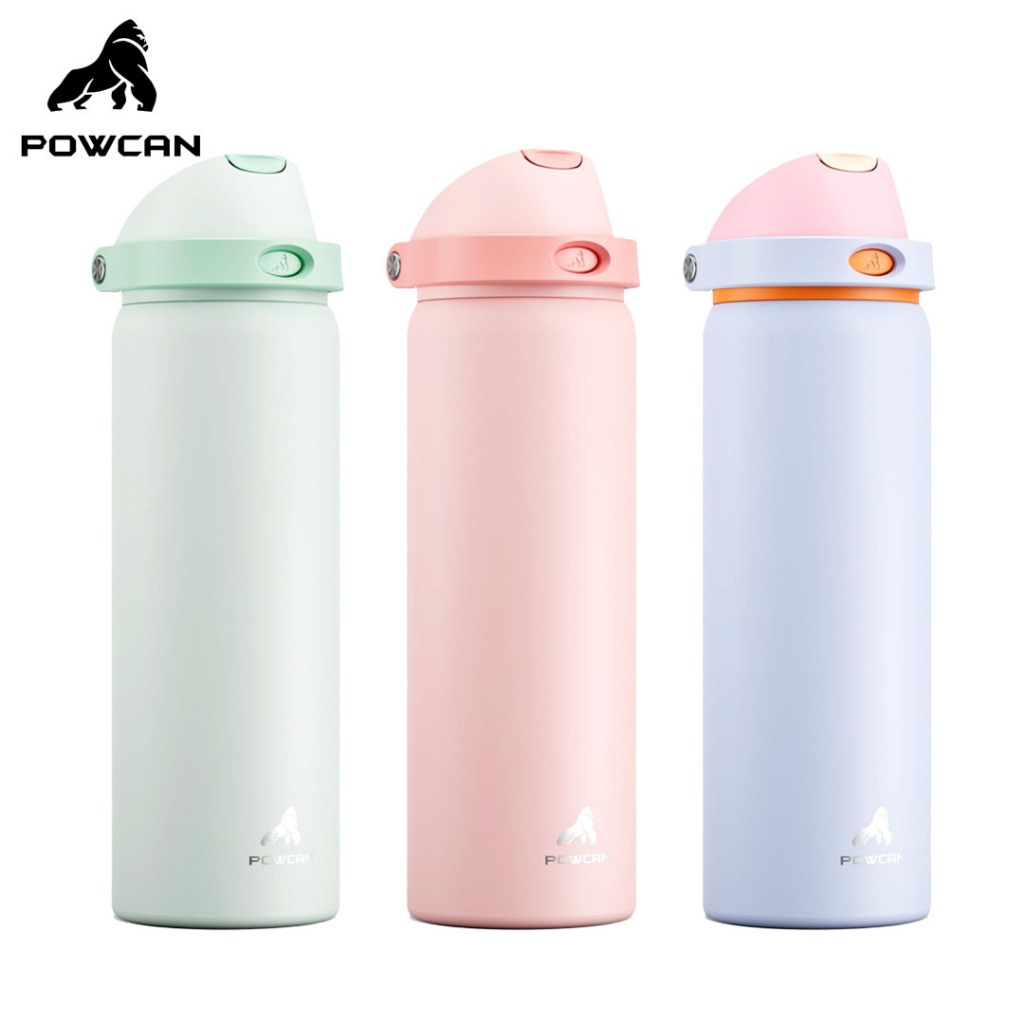 POWCAN 24oz/32oz/40oz Botol Air 304 Stainless Steel dengan Sedotan untuk Olahraga, Travel, dan Sekolah