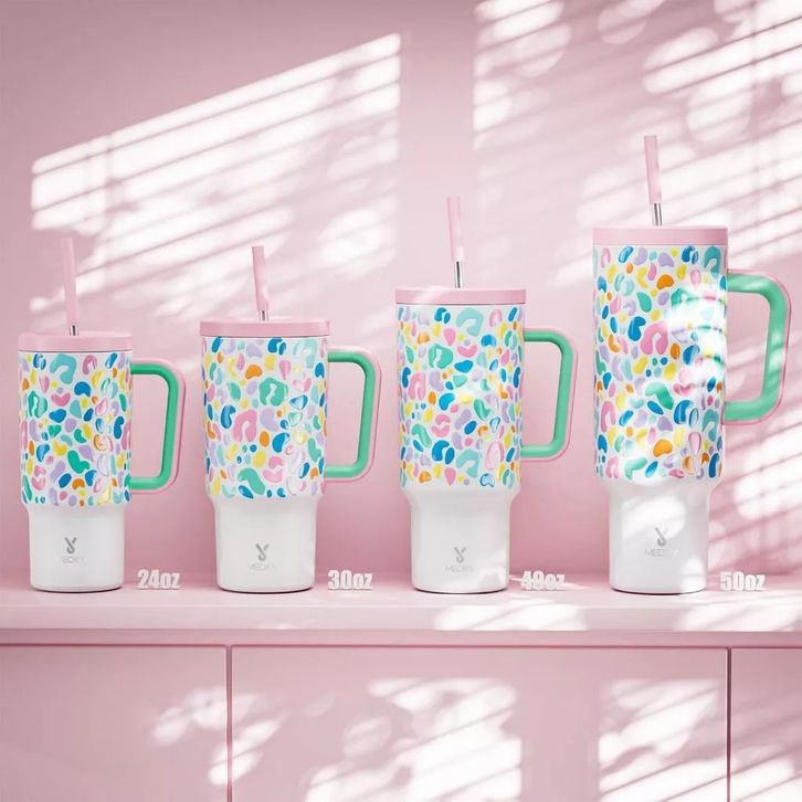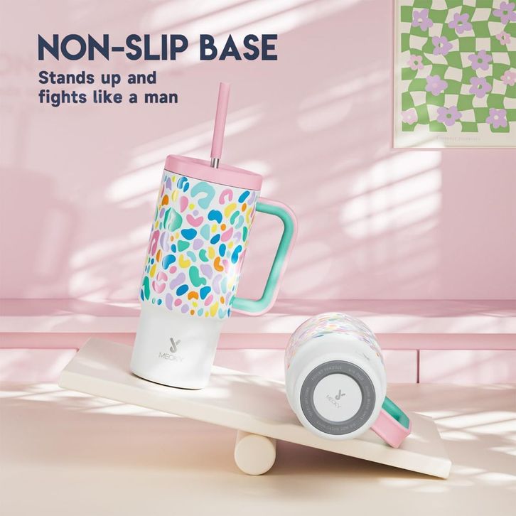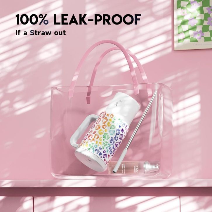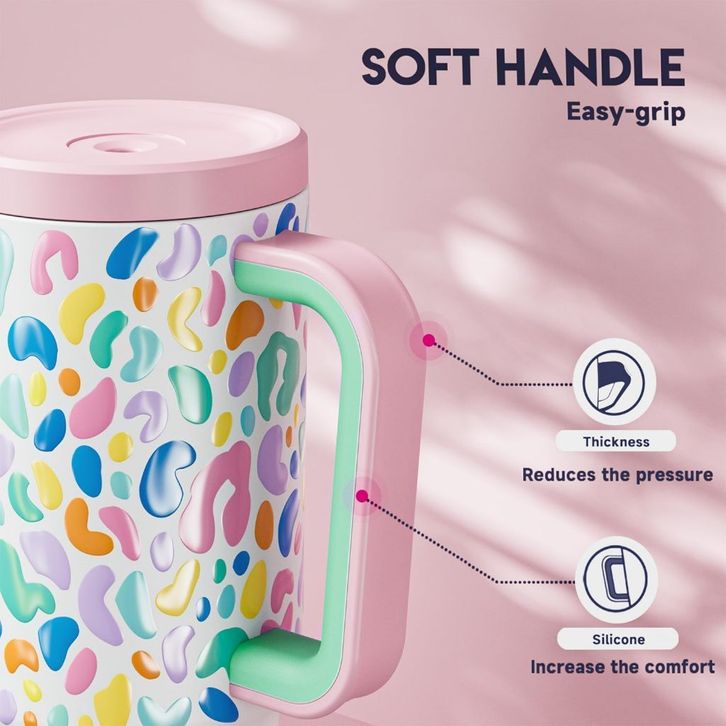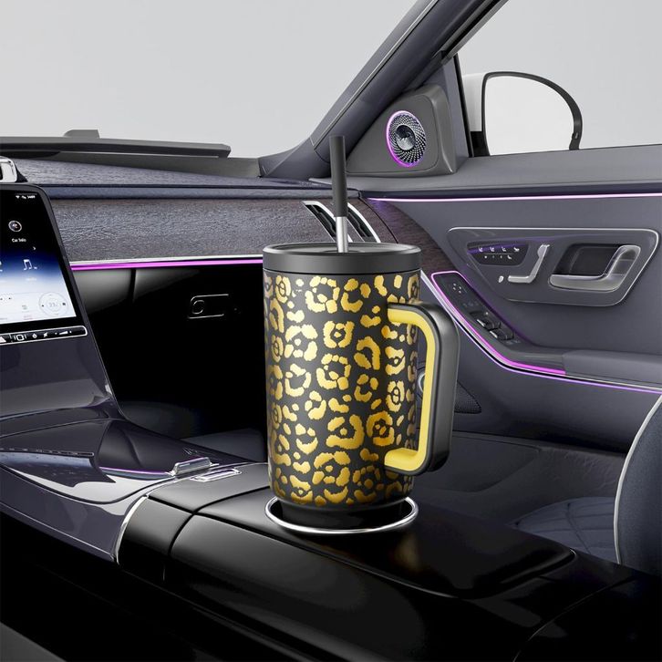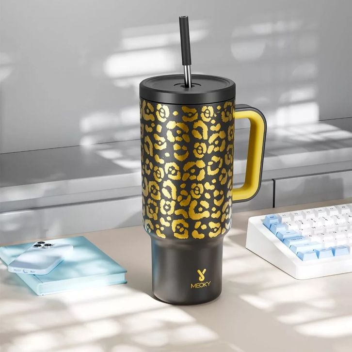 MEOKY 40oz (1180ml) Cangkir Termos Motif Macan Tutul Dengan Sedotan, Anti Bocor Dapat Menahan Panas